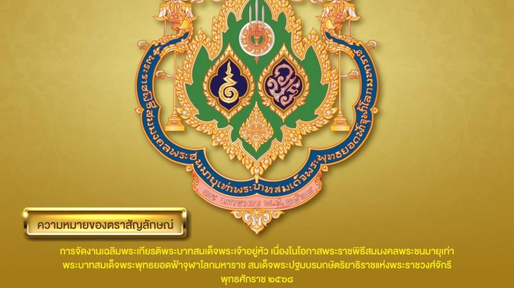 ตราสัญลักษณ์การจัดงานเฉลิมพระเกียรติพระบาทสมเด็จพระเจ้าอยู่หัว เนื่องในโอกาสพระราชพิธีสมมงคลพระชนมายุเท่าพระบาทสมเด็จพระพุทธยอดฟ้าจุฬาโลกมหาราช สมเด็จพระปฐมบรมกษัตริยาธิราชแห่งพระราชวงศ์จักรี พุทธศักราช ๒๕๖๘