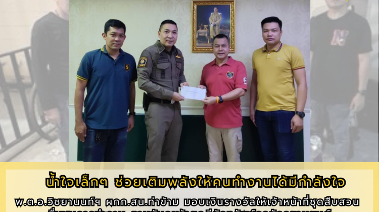 พ.ต.อ.วิชยานนท์ฯ ผกก.สน.ท่าข้าม มอบเงินรางวัลให้เจ้าหน้าที่ชุดสืบสวน
