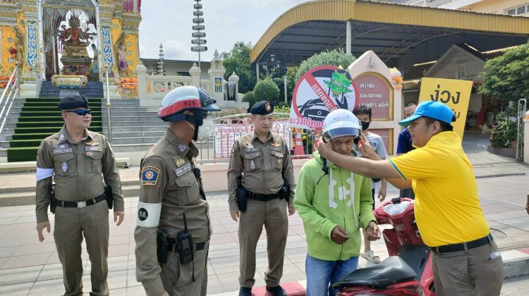 ประชาสัมพันธ์รณรงค์ป้องกันความสูญเสียจากอุบัติเหตุจราจร แจกน้ำดื่ม หมวกนิรภัยพร้อมแผ่นพับประชาสัมพันธ์ เนื่องในเทศกาลสงกรานต์ พ.ศ.2568 บริเวณปากซอยเทียนทะเล 5 ถนนบางขุนเทียนชายทะเล