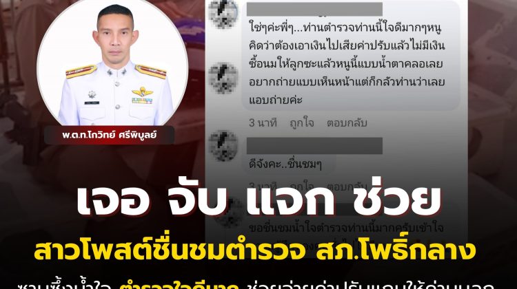 สาวโคราชชื่นชม ซึ้งน้ำใจ ตำรวจโพธิ์กลาง “เจอ จับ แจก ช่วยเหลือ”