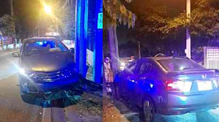 แจ้งเหตุ รถยนต์พุ่งชนเสาไฟฟ้า บริเวณหน้า สน.ท่าข้าม ผู้ขับขี่บาดเจ็บเล็กน้อย