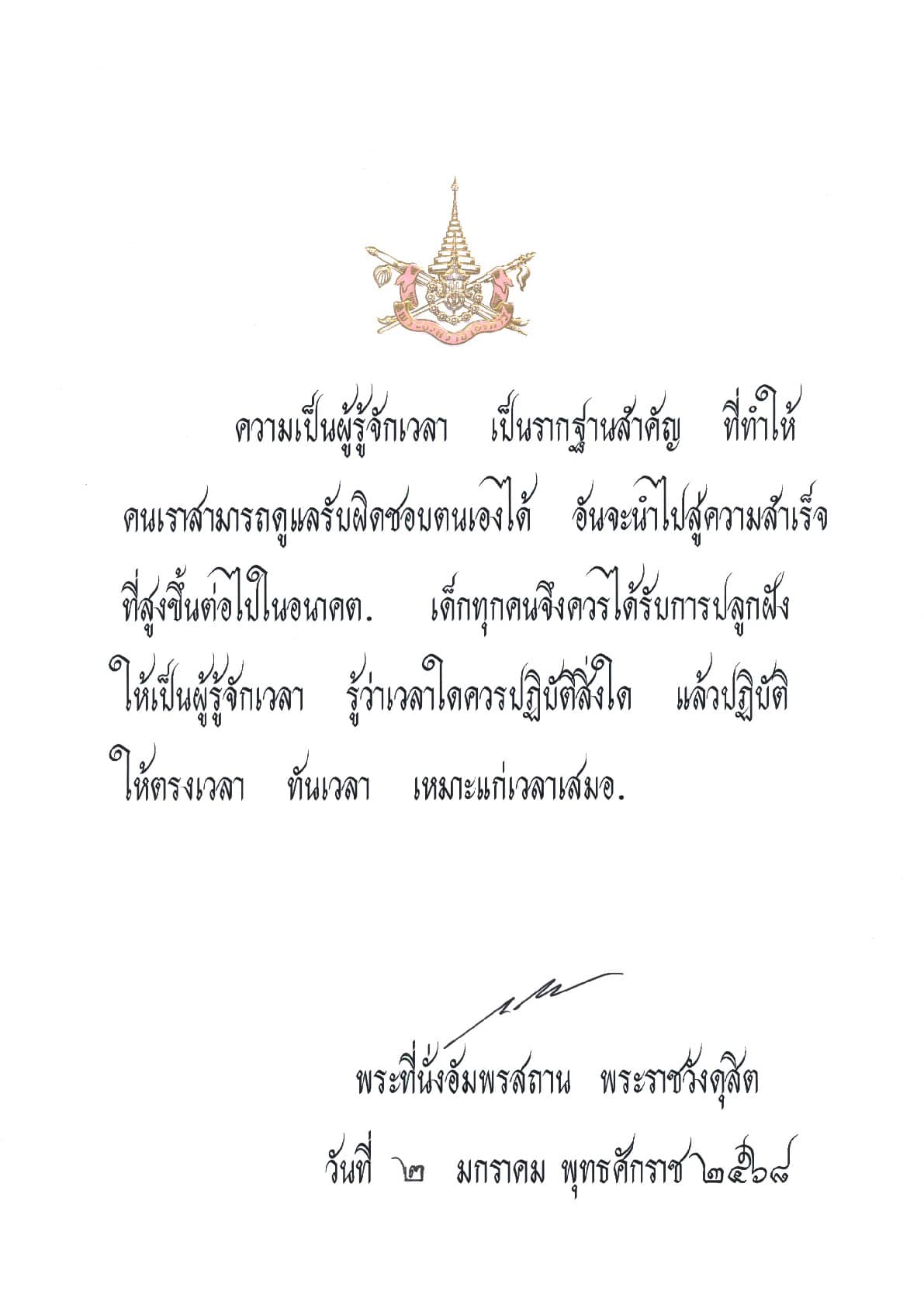 💛พระบรมราโชวาทพระบาทสมเด็จพระเจ้าอยู่หัว เนื่องในโอกาสวันเด็กแห่งชาติ ประจำปีพุทธศักราช ๒๕๖๘💛