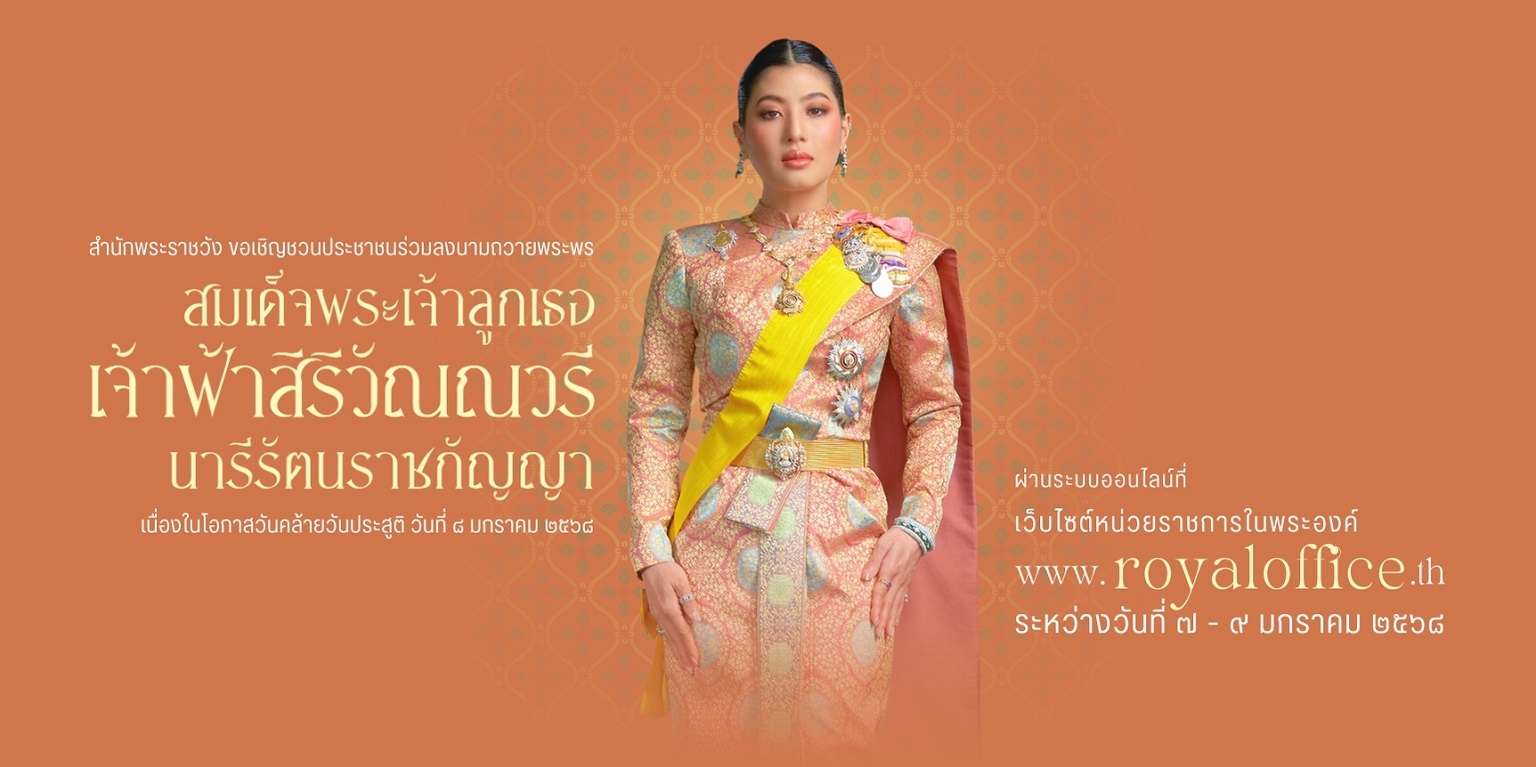 🧡 สำนักพระราชวัง ขอเชิญชวนประชาชนร่วมลงนามถวายพระพร สมเด็จพระเจ้าลูกเธอ เจ้าฟ้าสิริวัณณวรี นารีรัตนราชกัญญา เนื่องในโอกาสวันคล้ายวันประสูติ วันที่ ๘ มกราคม ๒๕๖๘ 🧡