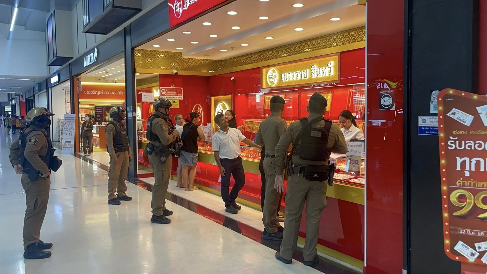 โชว์กำลังเชิงรุก! ชุดSWAT สายตรวจตำรวจท่าข้าม “คุมเข้มร้านทอง” สกัดเหตุร้ายก่อนเกิด ภายใต้การอำนวยการของ พล.ต.ต.ชรินทร์ โกพัฒน์ตา รอง ผบช.น. พล.ต.ต.สามารถ พรหมชาติ ผบก.น.9 พ.ต.อ.สุธี พรมมาลี รอง ผบก.น.9 (นครบาล 9-1) พ.ต.อ.วิชยานนท์ เอกตาแสง ผกก.สน.ท่าข้าม มอบหมายให้ พ.ต.ท.ศิวัช พุ่มนุ่ม รอง ผกก.ป.สน.ท่าข้าม พ.ต.ท.เธียรภัทร กล้าใจ สวป.สน.ท่าข้าม นำกำลัง MPB Basic SWAT