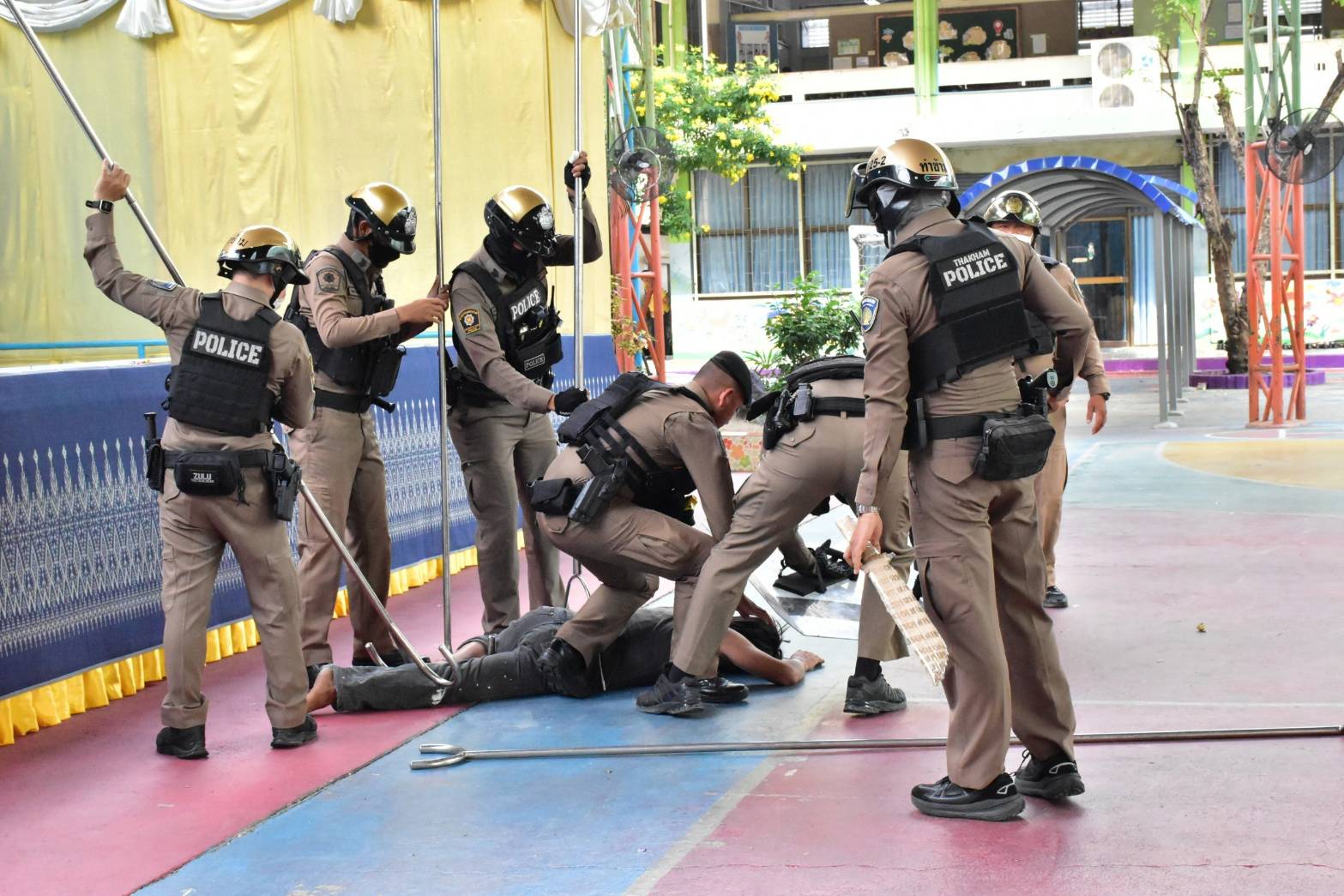 อบรมให้ความรู้เกี่ยวกับการป้องกัน บรรเทาภัยและร่วมซ้อมแผน การเอาตัวรอดจากสถานการณ์ฉุกเฉิน (หนี ซ่อน สู้) ณ โรงเรียนศาลเจ้า (ห้าวนุกูลวิทยา) แขวงแสมดำ เขตบางขุนเทียน กรุงเทพฯ