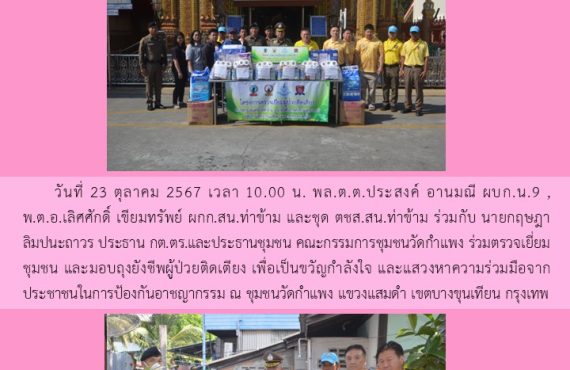 วันที่ 31 ตุลาคม 2567 เวลา 09.00 น. พ.ต.ต.วุฒิชัย แสนแก้ว สวป.(ชส.)สน.ท่าข้าม, นางอังคณา แซ่ตั้ง ตัวแทนคณะ กต.ตร.สน.ท่าข้ามและที่ปรึกษา กต.ตร.สน.ท่าข้าม พร้อมชุด ตชส. ตรวจเยี่ยมชุมชนประชาสัมพันธ์เรื่องมาตรการป้องกันและปราบปรามอาชญากรรมทางเทคโนโลยี เพื่อให้ทราบถึงแนวทางมาตรการ ป้องกันปราบปรามการกระความผิดทางเทคโนโลยี จากการใช้งานซิมโทรศัพท์,บัญชีธนาคาร, บัตรอิเลคทรอนิกส์ พบประธานชุมชนการเคหะธนบุรี 1 ส่วน3 ถ่ายทอดความรู้เพื่อนำไปถ่ายทอดต่อทางเสียงตามสายในชุมชนต่อไป